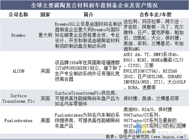 Global main carbon ceramic composite brake disc preparation enterprises and customers