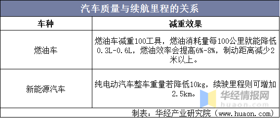 According to statistics, the vehicle weight reduced by 10%, fuel efficiency can be improved by 6%-8%; The fuel consumption of 100 km can be reduced by 0.3-0.6 liters per 100 kg reduction in vehicle mass. The mass of pure electric vehicle is reduced by 10kg, and the driving range is increased by 2.5km.